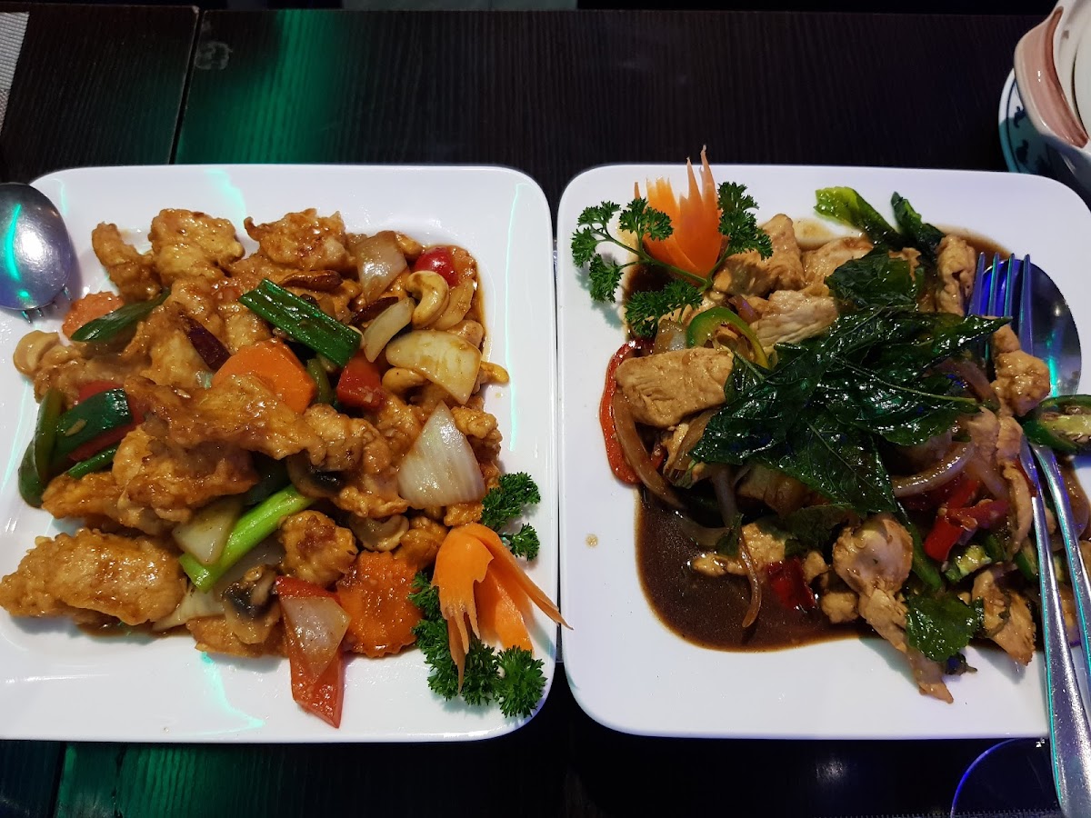 The menu at this Asian restaurant is filled with savory dishes that promise to transport your taste buds straight to Asia. If you're a fan of rich, comforting flavors, you must try their Duck Curry. The duck is perfectly tender, while the curry sauce is rich and aromatic, making it the perfect dish for anyone who loves a good mix of spice and savory goodness. Another standout is the Scampis Pané, crispy on the outside and succulent on the inside, making it a popular choice for seafood lovers. The Gebratene Nudeln Mit Gemüse, or fried noodles with vegetables, is a crowd-pleaser that offers a satisfying combination of textures and flavors, making it a great vegetarian option too. If you're looking for something lighter, the Chicken Noodles are a simple yet flavorful choice, with tender chicken and perfectly cooked noodles tossed in a savory sauce.